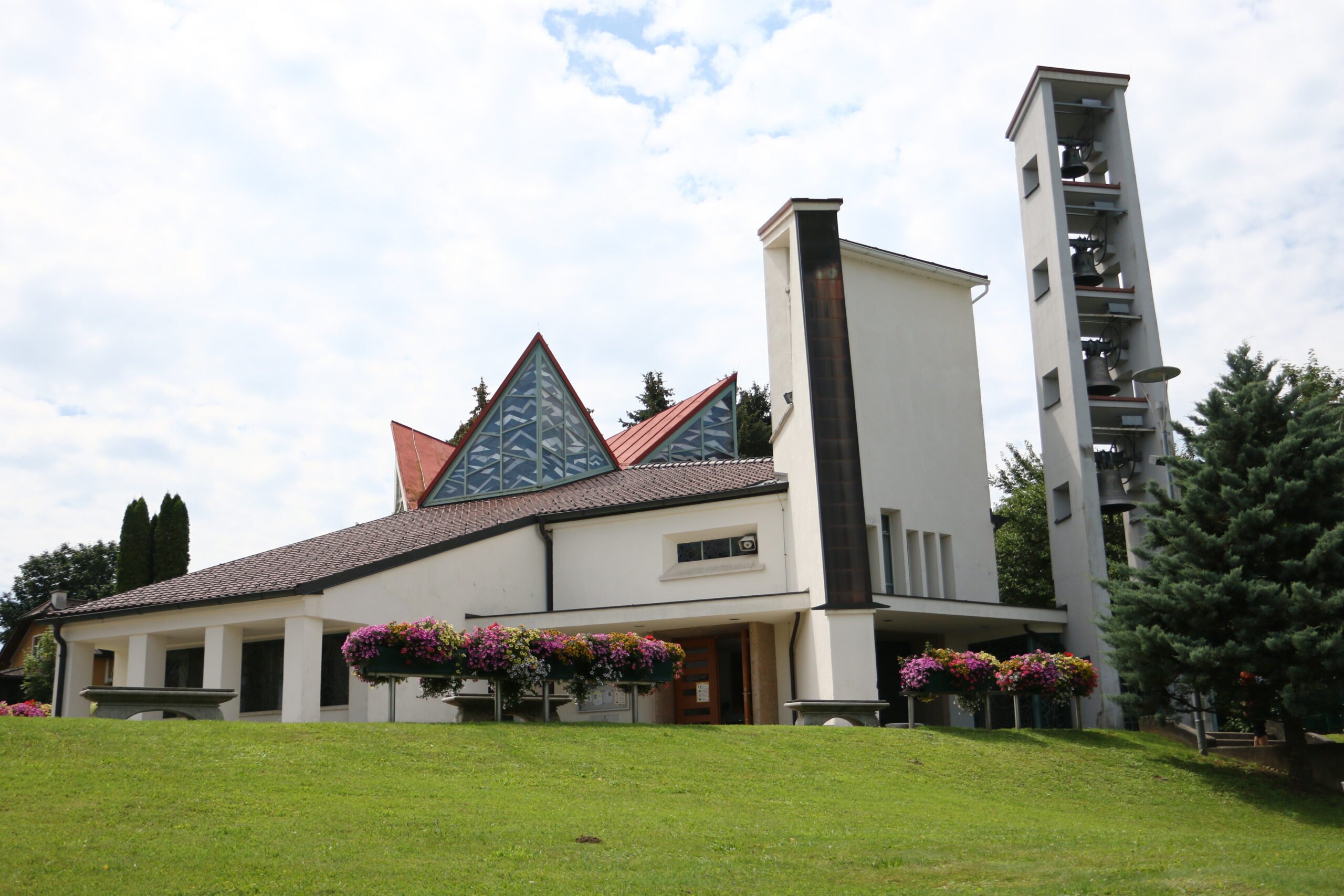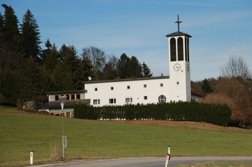 Von außergewöhnlicher Schönheit ist das große Maßwerkfenster von dem Künstlerehepaar Prof. Osterrieder. Die figuralen Farbglasfenster entstanden durch Leopold Birstinger.
